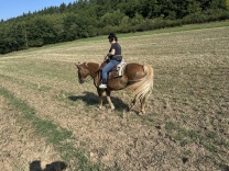 Sie ist seit September 2022 als Einsteller bei uns. Sie gehört Sina, die nicht so viel Zeit hat um sich um sie zu kümmern, weshalb wir das gerne übernehmen. Sie ist eine ganz liebe Haflingerstute, die nichts falsches an sich hat. Klar, fressen ist schon wichtig für sie, wobei sie es nicht unter dem Sattel versucht, Ansonsten typisch Haflinger. Aktuell wird sie mit einer Westernstange fast ohne Zungenfreiheit mit zwei Finger geritten, auf diese sie sehr fein reagiert.